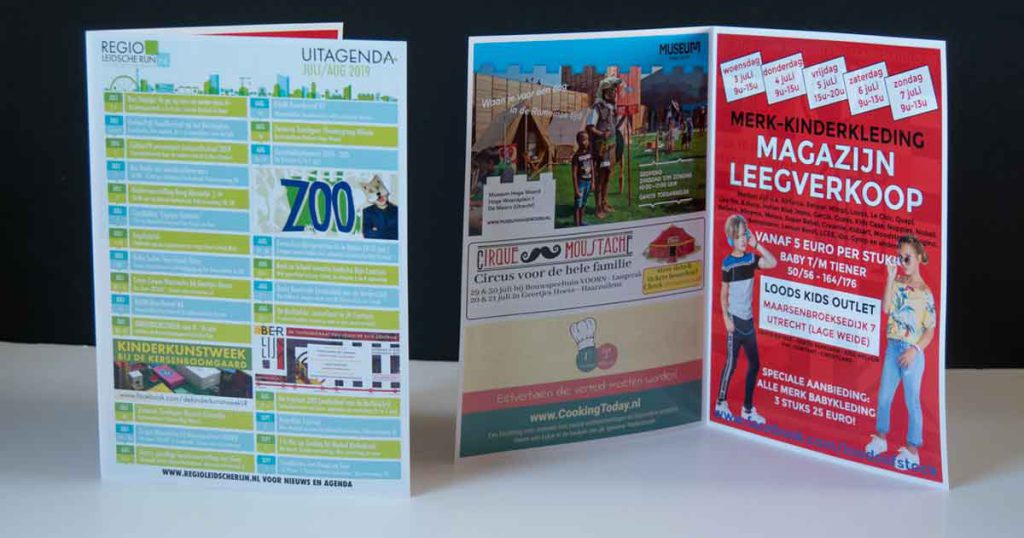 - Het formaat is altijd A5. Afhankelijk van het aantal advertenties kan het een tot A4 gevouwen A5 flyer zijn.