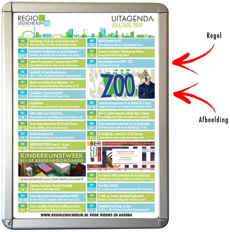 De advertentieformaten op de uitagenda flyer zijn hier te vinden.